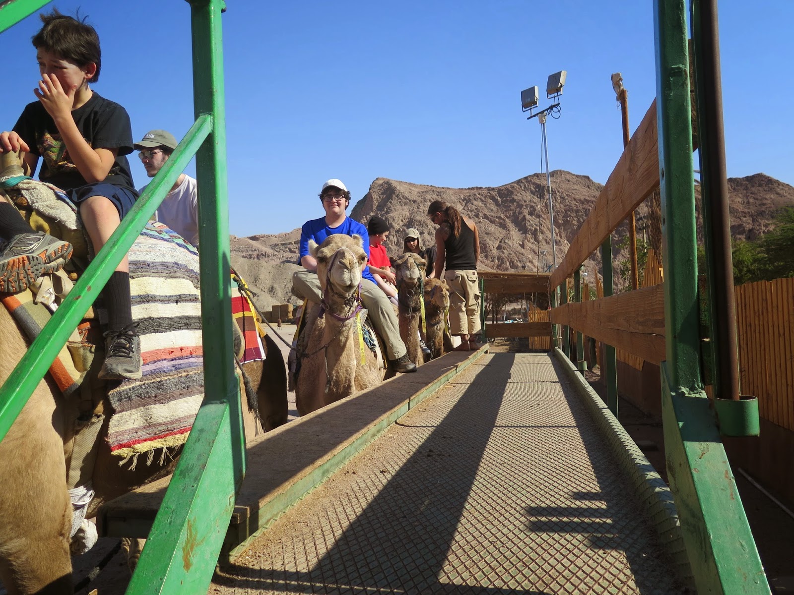 . . . I am sitting in the coach in Livingston realizing I never did quite finish blogging about the trip. We are still working on images. Mine are mostly family pictures as we have so many Israel pictures from prior trips it didn’t seem interesting to take yet another picture of the Wall or other famous places. Here we are in Eilat at the Camel Ranch: